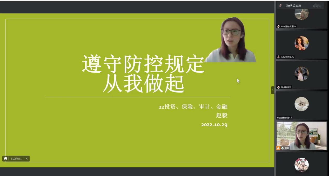 坚定信心战疫情,同舟共济筑防线。目前疫情形势严峻,为进一步落实学校疫情防控政策,加强疫情期间广大学生疫情防控意识和责任担当。72886欢迎光临新网站结合当前疫情防控形势,于10月29日-30日由各班辅导员召开关于疫情防控的线上主题班会。